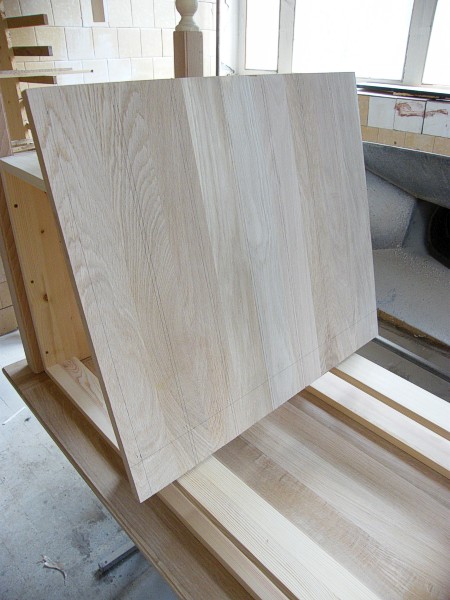 في هذه الحالة ، يختلف مبدأ جعل الجدول قليلاً عن سابقه. من الضروري استخدام 3 أوراق ، حجمها سيكون 2000x200x18 ملم. هذا هو الحجم الأمثل بسبب قوته ، وبالتالي ، المتانة.في تصنيع الجدول سوف تحتاج: