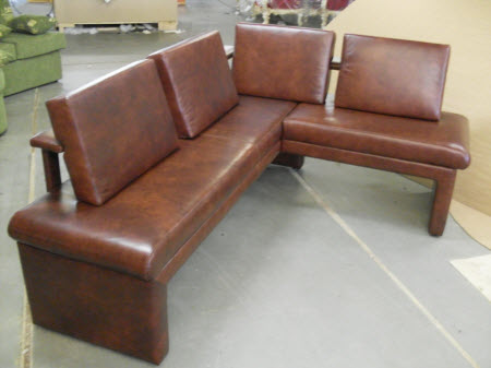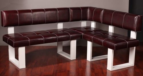 - من أجل الانتهاء من أريكة ركن المطبخ ، استخدم المفروشات من بديل جلدي ، أقمشة كثيفة. يمكن ملء هذه الزاوية ، ناعمة ، أو بدونها ، ثم المقاعد ستكون صعبة. اختيار لون مناسب يتيح مجموعة واسعة من المواد المماثلة في شبكة التوزيع.