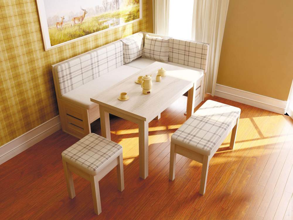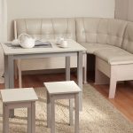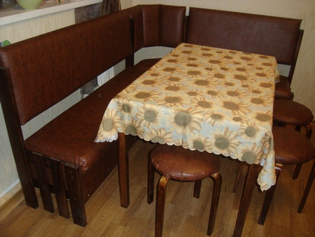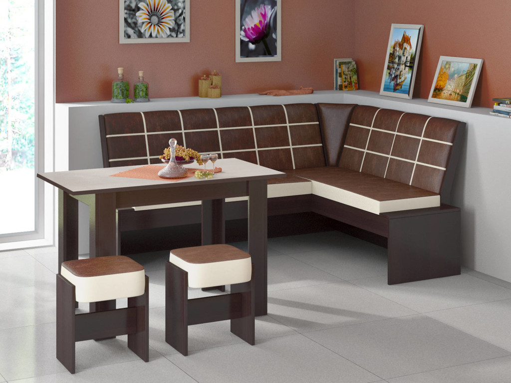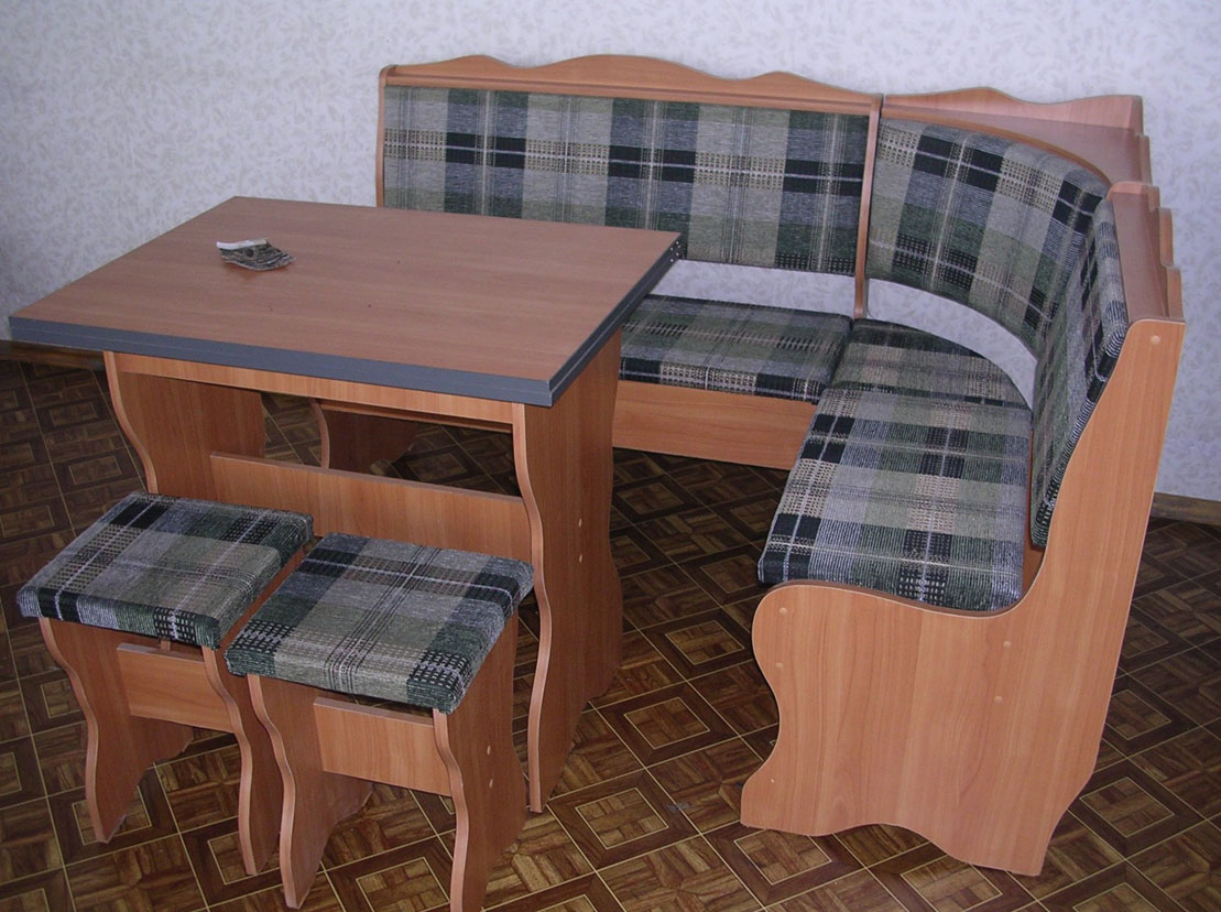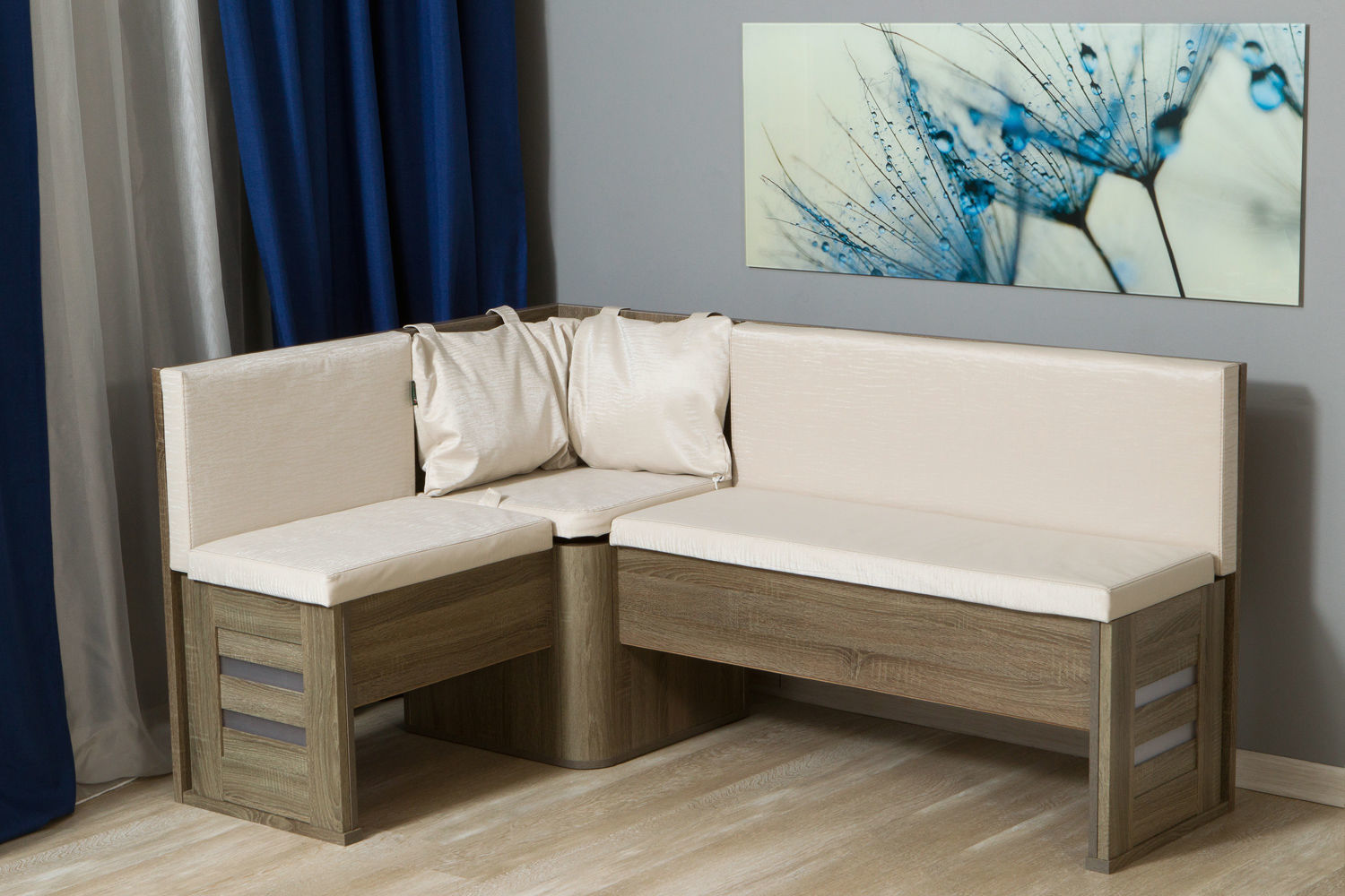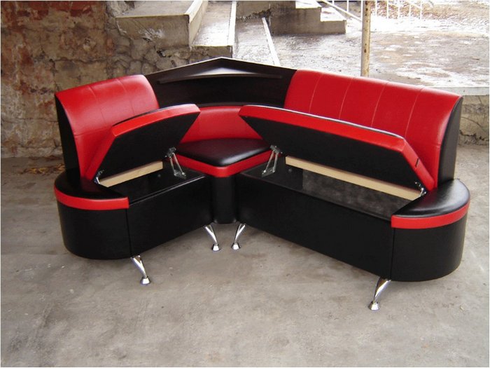 - الوظيفة. صوفا زاوية للمطبخ قد تحتوي على صناديق لوضع الأشياء أو مخزون الطعام أو الأطباق أو الخضراوات.