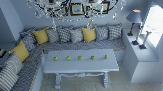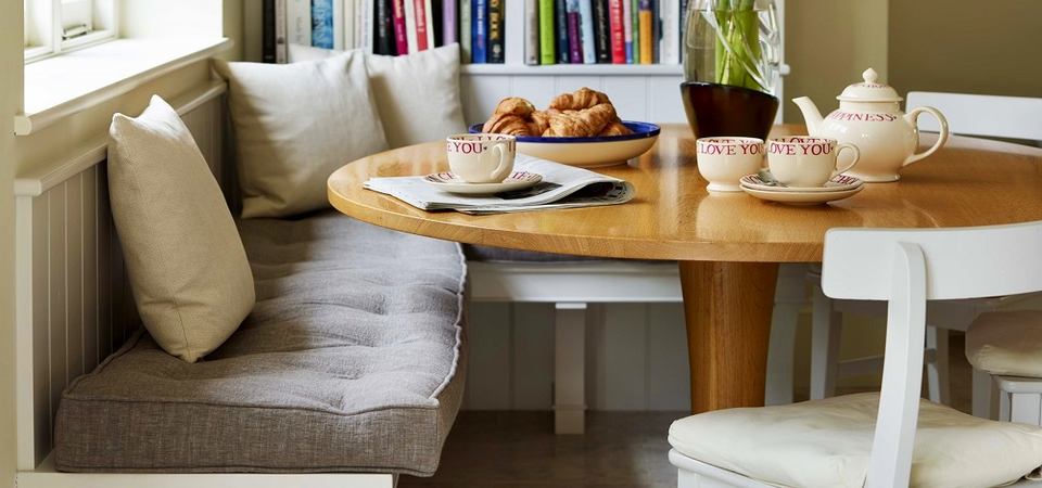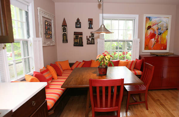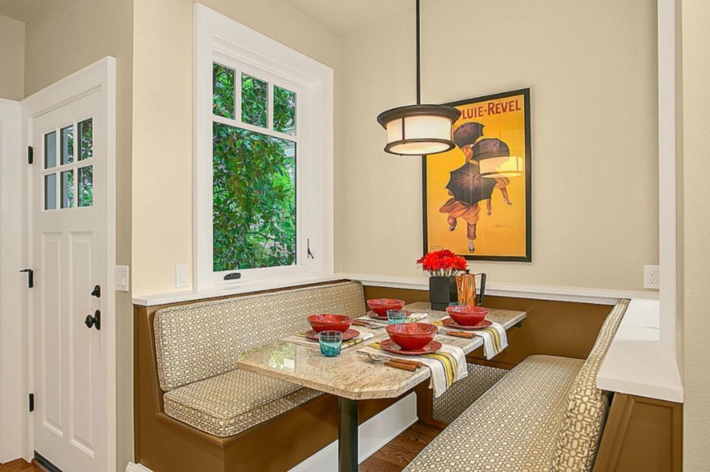 الركن مع المفروشات والوسائد في الداخل من المطبخ