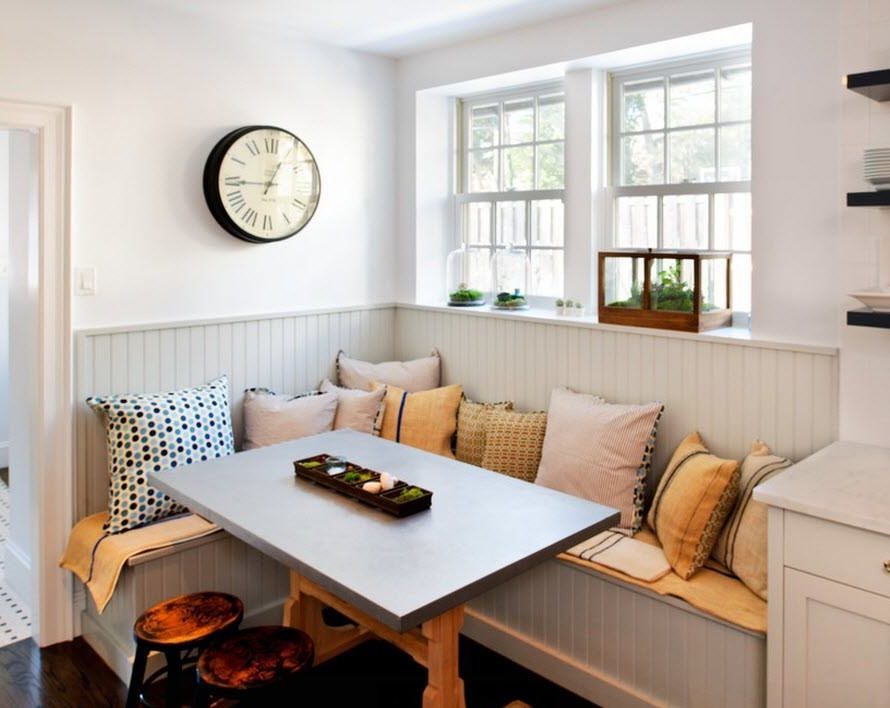 أرائك ركن المطبخ لفترة طويلة لن تنفد ، لأنها مريحة وعملية وتوفر مساحة وتوفر الراحة. المطبخ هو أكثر غرفة متعددة الوظائف. بالنسبة لمعظم الناس ، المطبخ هو المكان الذي يوحد جميع أفراد الأسرة على نفس الطاولة. يمكن توضيح الرغبة في جعل هذا الوقت أكثر متعة والمكان أكثر جاذبية. قطعة داخلية جديدة تجعل الجو دافئًا ومريحًا ، بالإضافة إلى الإضاءة المناسبة. مصباح إضافي على ارتفاع قابل للتعديل أو الشمعدان سيكون عنصرا رائعا في الديكور.