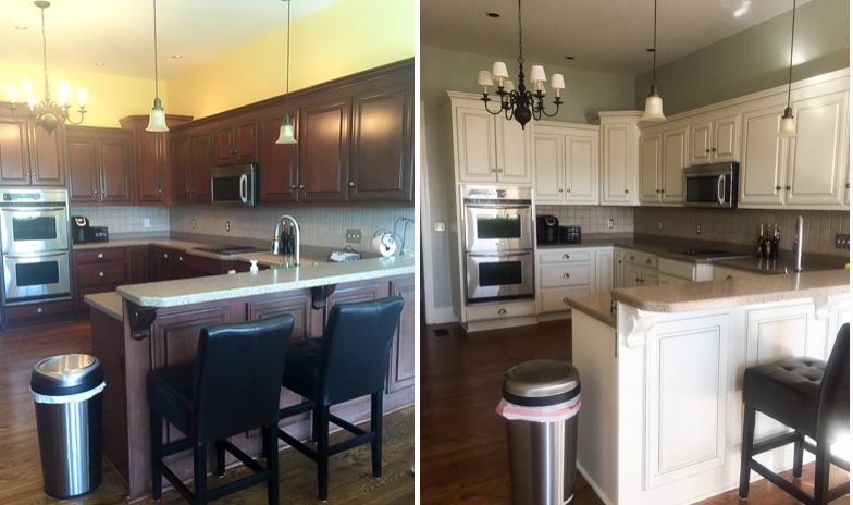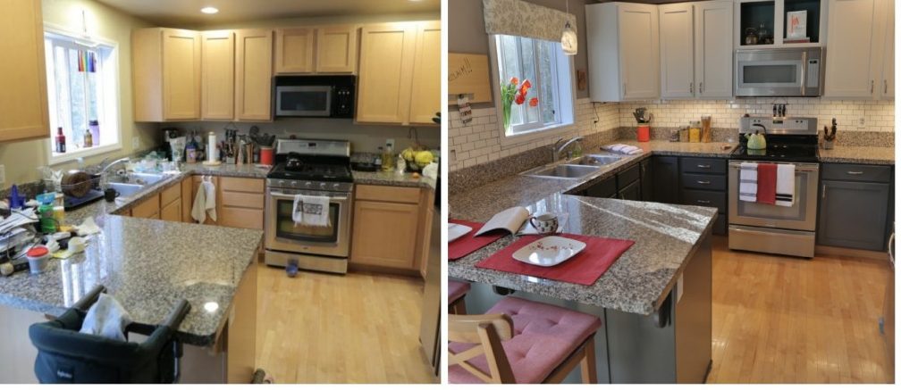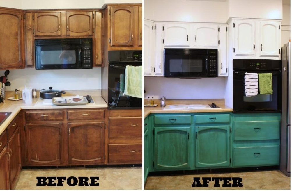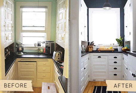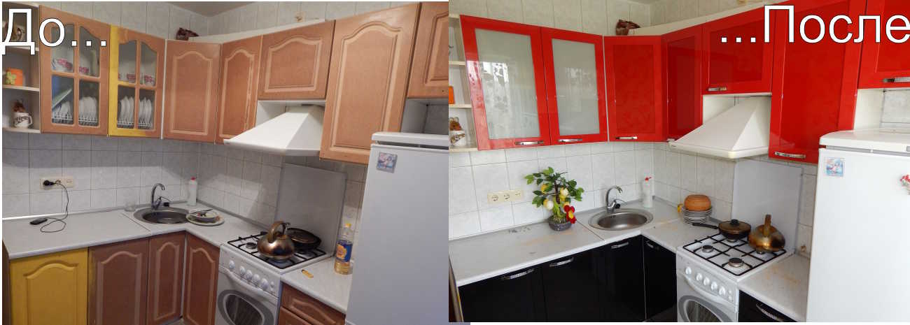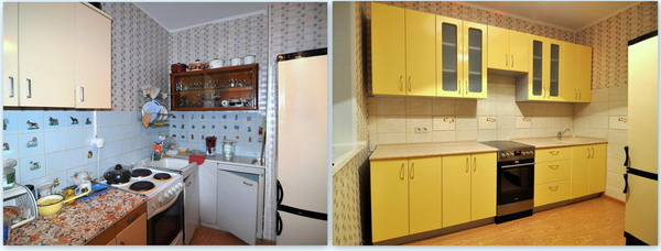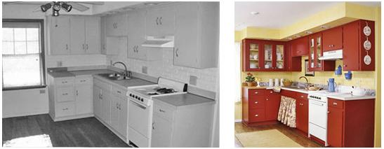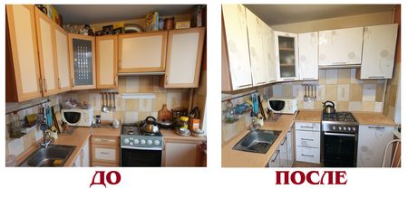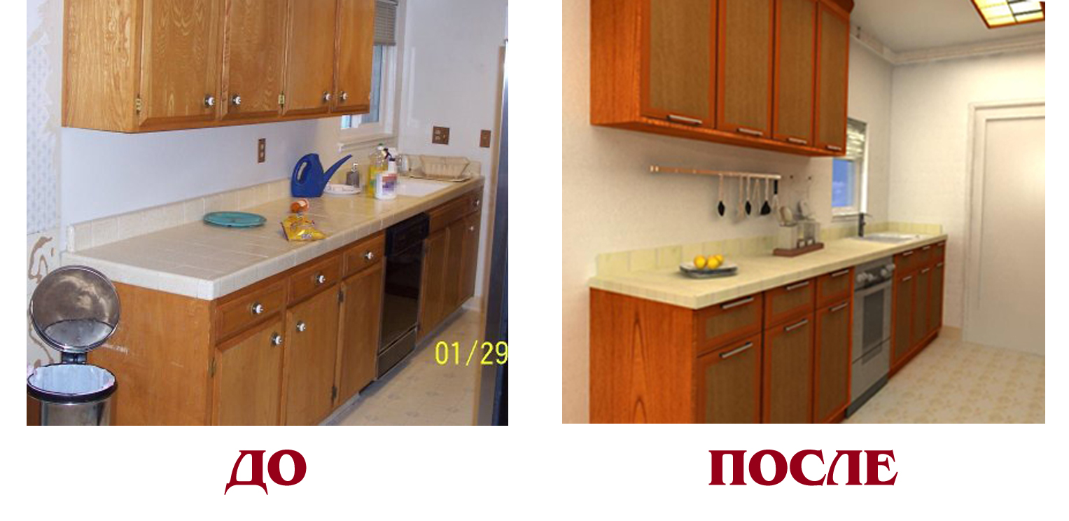 منظر للمطبخ قبل وبعد تغيير الواجهات