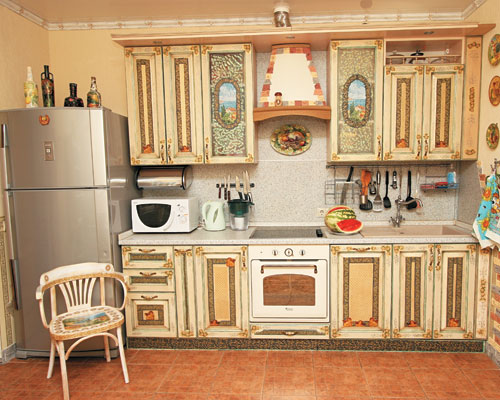 من أجل تغيير مظهر المطبخ بطريقة غير مكلفة من خلال استبدال واجهات المطبخ ، سيحتاج الحرفي المنزلي إلى عدد من المواد والأدوات ، تعتمد قائمتها على تقنية الترميم المختارة.