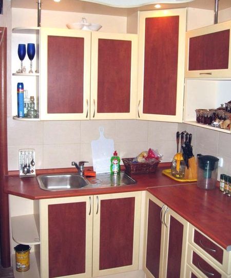 للحصول على تحديث كامل لمظهر الواجهات ، من المرغوب فيه استبدال جميع تجهيزات الأثاث ، واختياره وفقًا لأسلوب المطبخ المحدث. مع المقابض الجديدة وحلقات سماعات الرأس سوف تبدو أفضل بكثير.