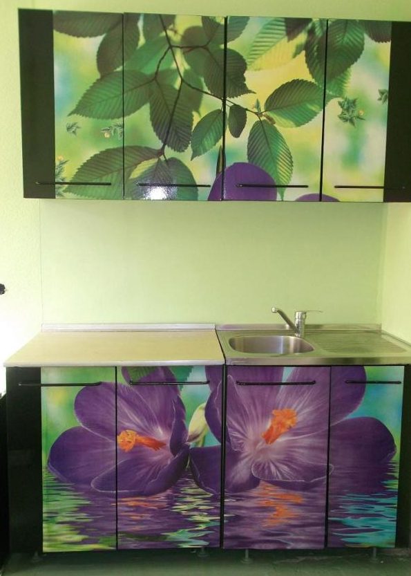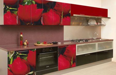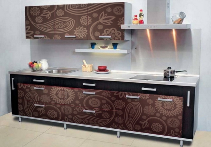 تستخدم أساسا فيلم بولي فينيل كلوريد (PVC) ، والذي هو أسهل طريقة لاستعادة واجهات الأثاث. مزايا فيلم PVC هي سعر في المتناول ، وبساطة في الالتصاق ومزيد من الاستغلال ، ومقاومة عالية لدرجات الحرارة والرطوبة الشديدة (وهو أمر مهم للغاية بالنسبة للمطبخ) ، ومجموعة واسعة من الألوان والزخارف (خيار اختيار نمط للواجهات الجديدة لأي تصميم مطبخ ، من رتابة إلى تقليد الرخام أو الخشب).