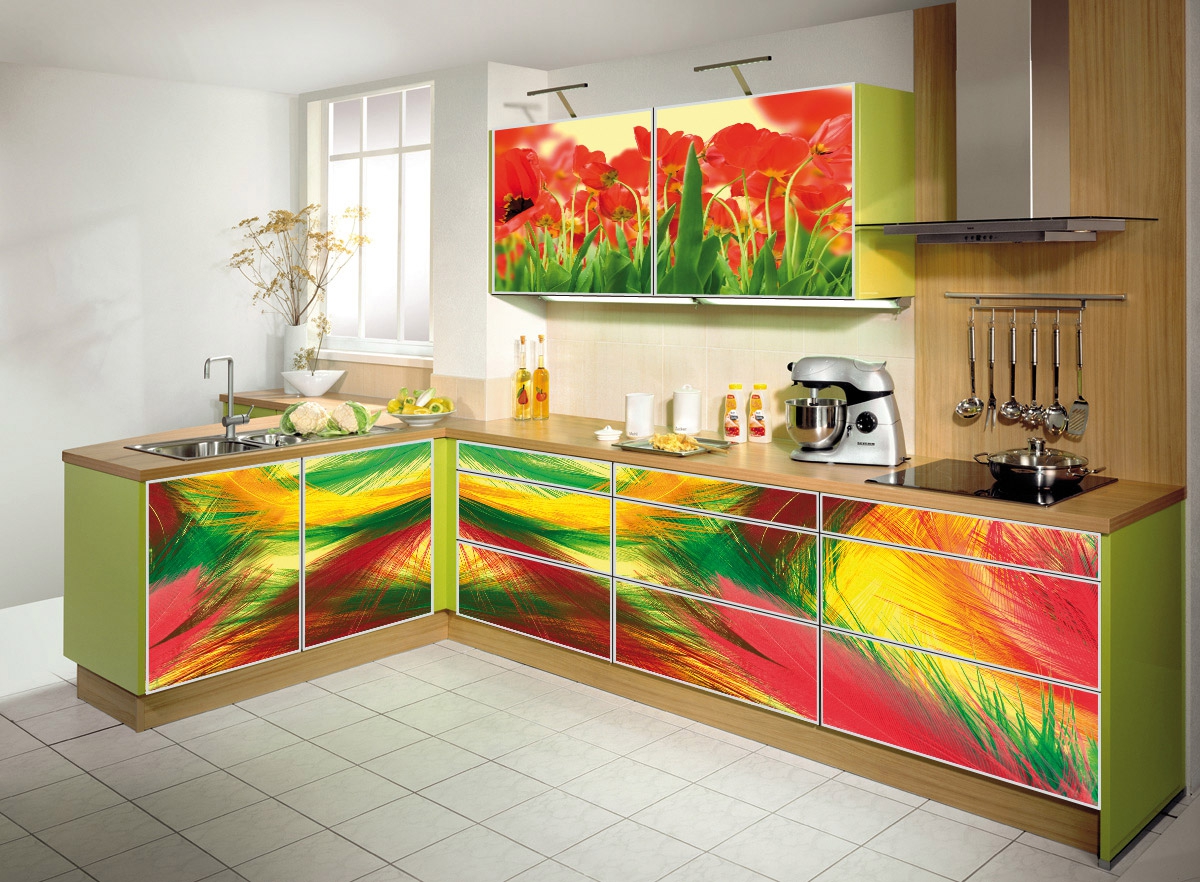 واحدة من أسهل الطرق لتحديث مجموعة المطبخ هي لصق فيلم على الواجهات.