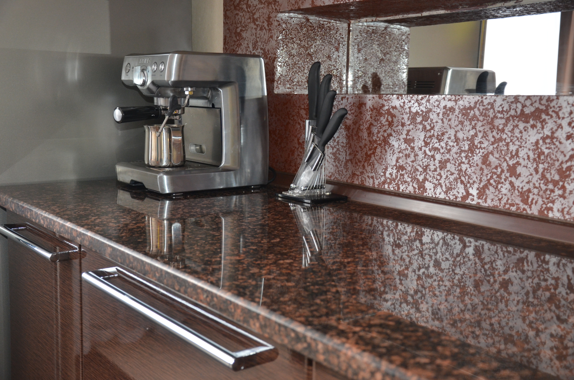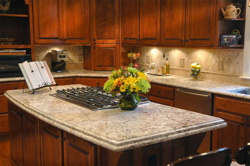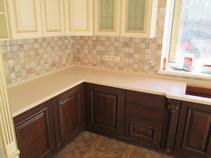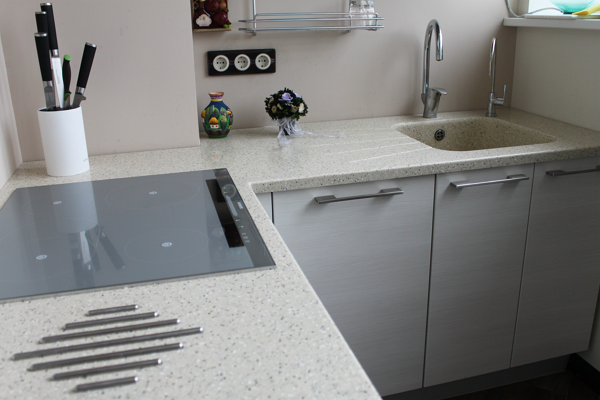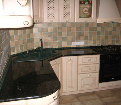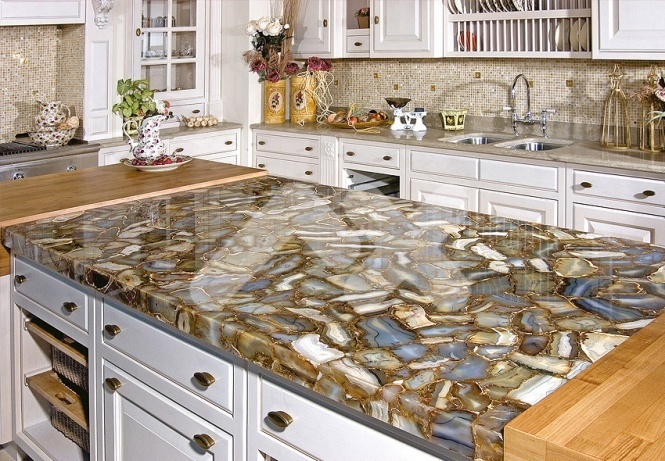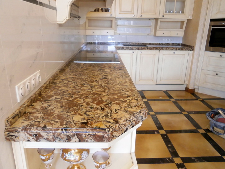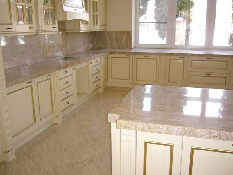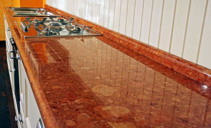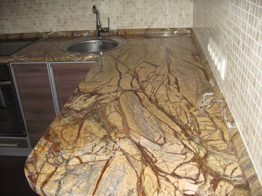في إنشاء أسطح المطبخ نادرا ما تستخدم بسبب ارتفاع الأسعار والوزن الثقيل وصعوبة التثبيت. أبعاد هذا النوع من المواد: العمق - 60 سم ، الطول من 100 سم ، الارتفاع - من 2 سم.