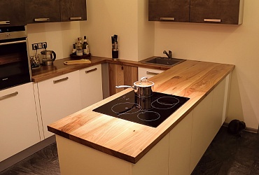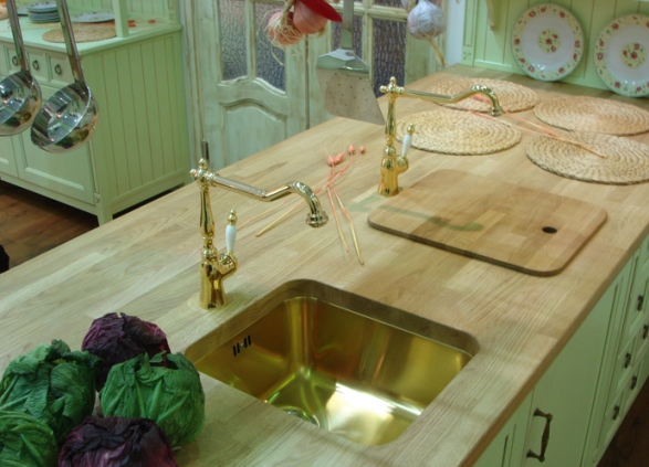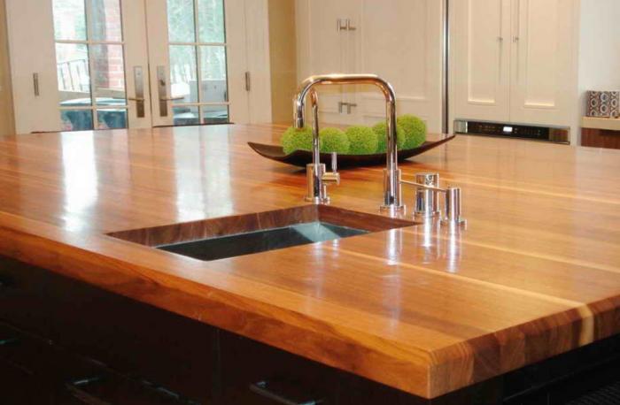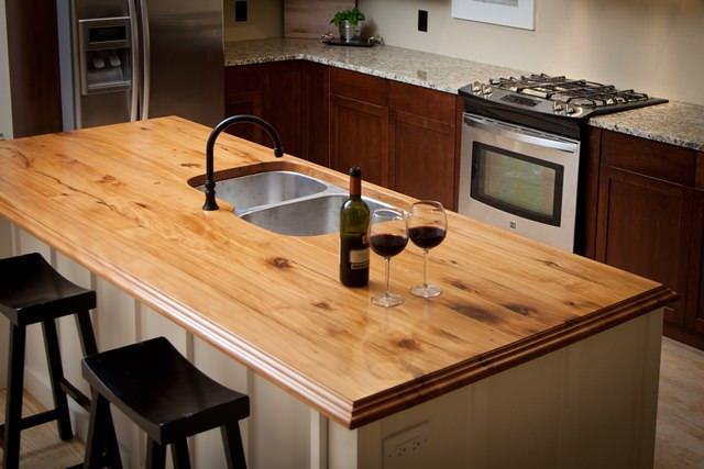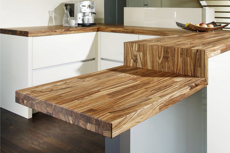 الخيار الأكثر عملية ودائم هو سطح الطاولة الخشبية الصلبة المصنوعة باليد. كونترتوب خشبية تبدو أكثر جمالا من نظرائهم من البلاستيك والزجاج. النمط الطبيعي للشجرة فردي ، فريد من نوعه.