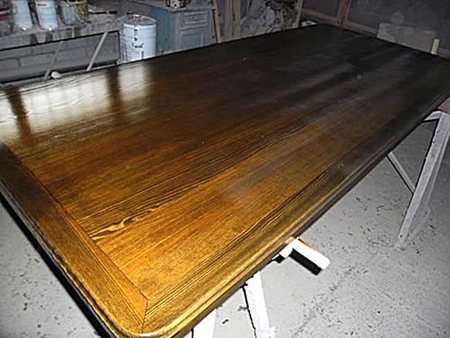 يمكن تغيير لون سطح المنتج ، إذا رغبت في ذلك. سطح ملون وصمة عار على الشجرة تحت أي الظل. قم بذلك قبل طلاء المنتج بالورنيش. يجب أن نتذكر أنه بعد تلميع الشجرة لديه القدرة على تغيير اللون الأصلي ، يصبح أكثر قتامة.