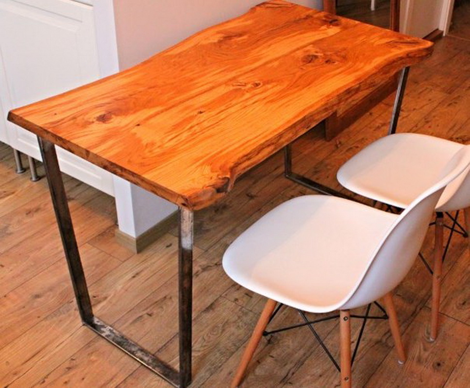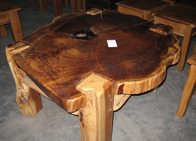 قرار مثير للاهتمام لصنع منتج من عدة أنواع من الخشب. في هذه الحالة ، يبدو سطح الطاولة مع الاختيار الصحيح للصخور ، غنيًا وممتعًا ومبتكرة.