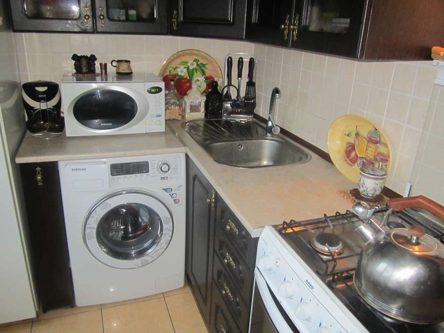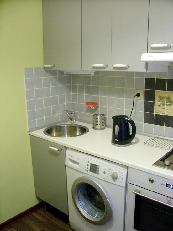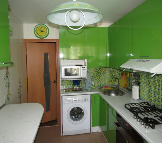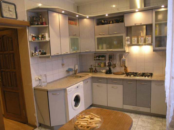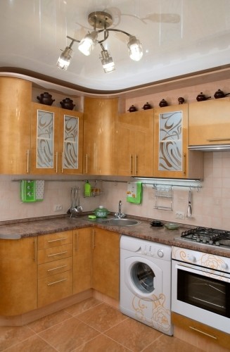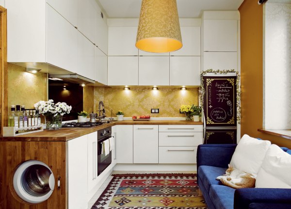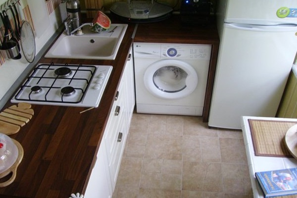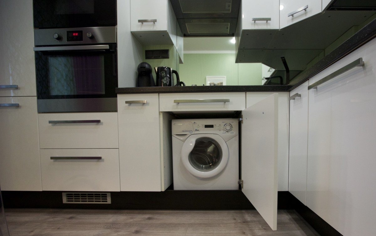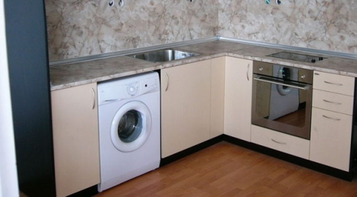 في حالة تثبيت غسالة في المطبخ ، سيتم ترجمة معظم الأجهزة في المنزل في مكان واحد ، مما يتيح لك تحسين المساحة والوقت.