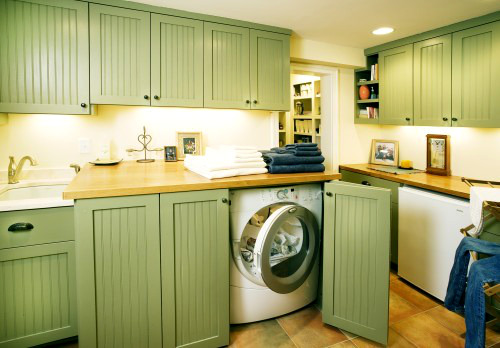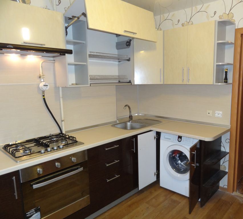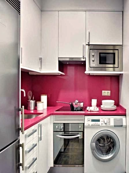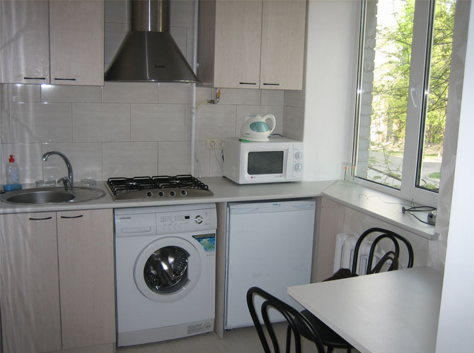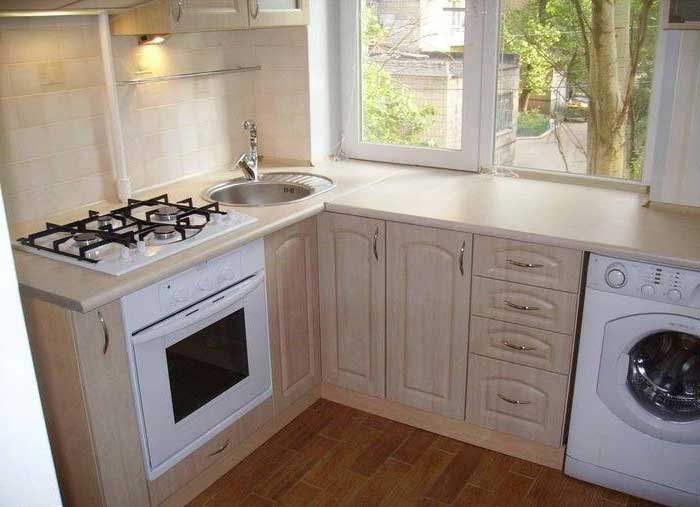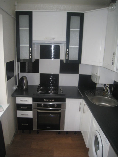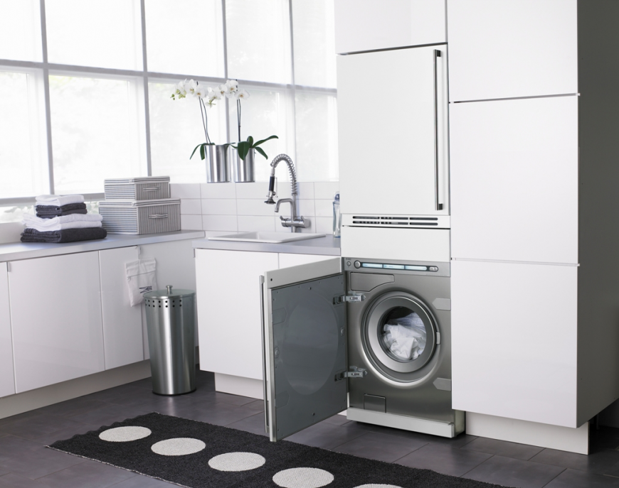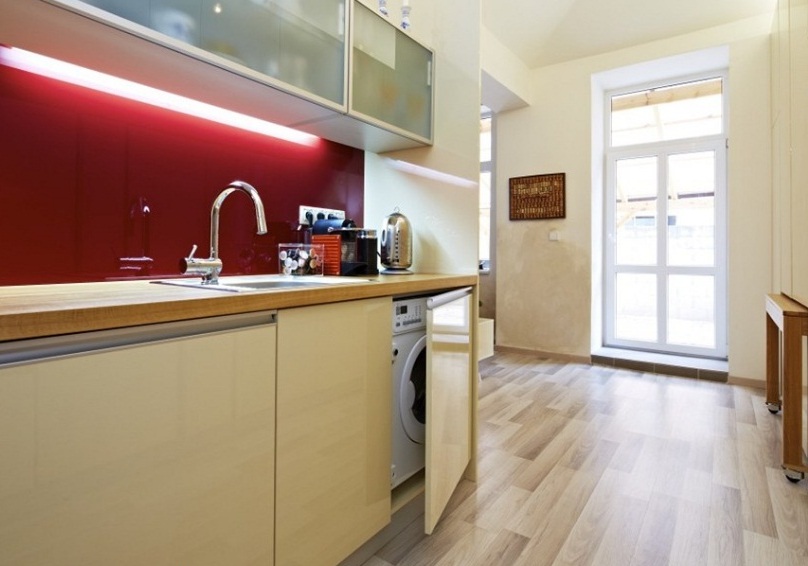 في حالة تثبيت غسالة في المطبخ ، سيتم ترجمة معظم الأجهزة في المنزل في مكان واحد ، مما يتيح لك تحسين المساحة والوقت.