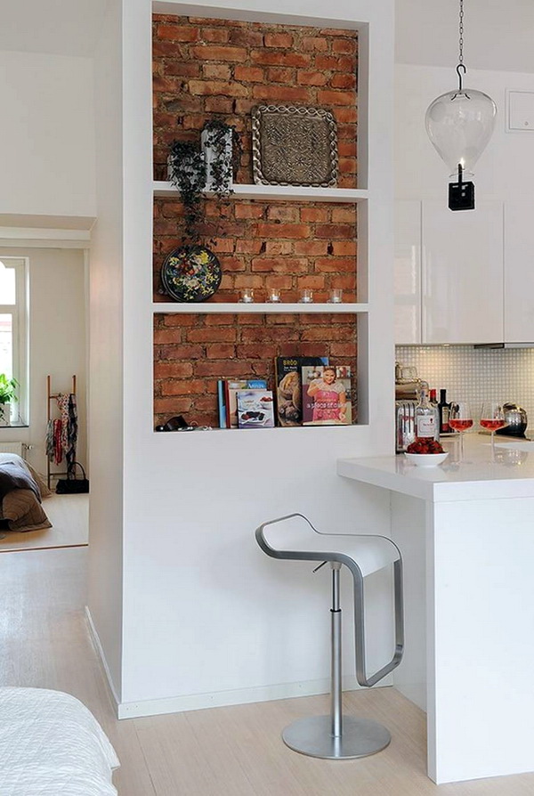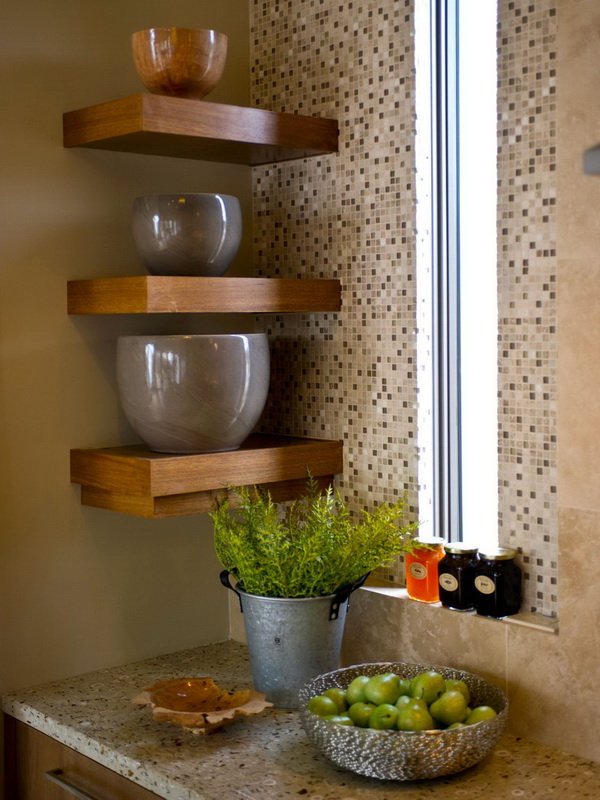 يمكن استخدام أرفف مفتوحة للمطبخ أينما كان هناك مساحة صغيرة خالية.