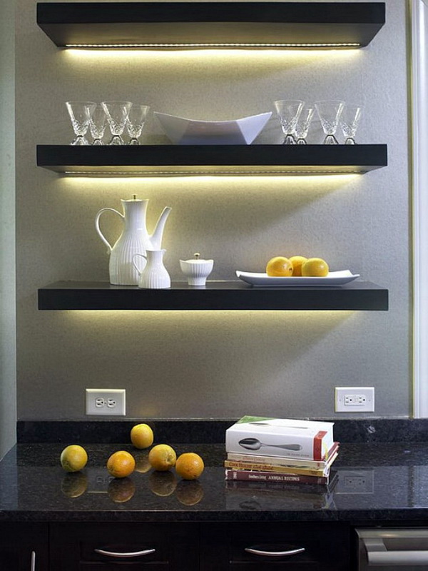 نقطة واحدة: يجب أن تكون الأرفف الزجاجية المفتوحة في المطبخ موثوقة. لذلك ، ليس من المعقول أن تأخذ زجاجًا أقل من 6-8 مم ، فهناك خطر كبير من تصدع الأرفف تحت وطأة العناصر المتباعدة.