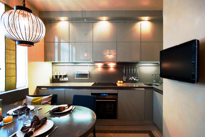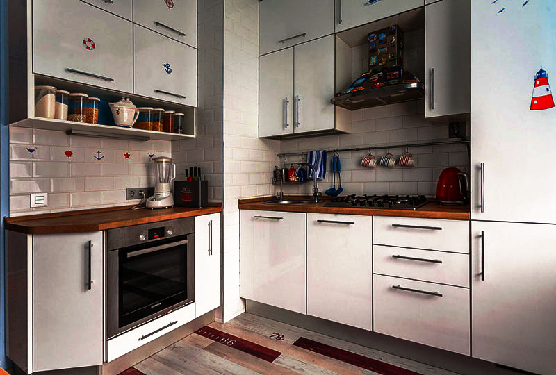 - خزائن إلى السقف ، حتى المطبخ الصغير سوف يتحول إلى مطبخ واسع.