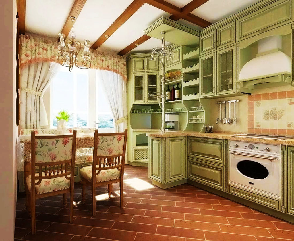 الزجاج المفتوح والمغلق على السقف في المطبخ بأسلوب بروفانس