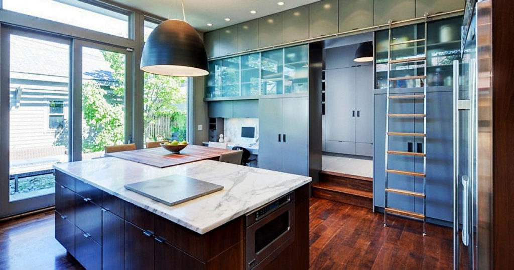 أفكار التصميم الداخلي للمطبخ: خزائن حتى السقف