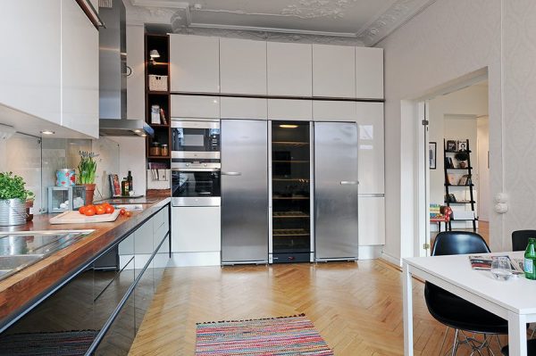 مثل تصميم المطبخ هو الآن بشعبية كبيرة. السماعات ذات الخزانات إلى السقف ستحول الغرفة وتجعلها متعددة الوظائف.