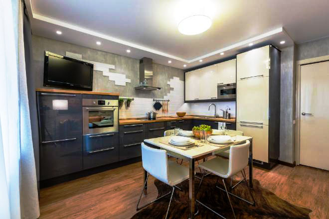 يتم تحديد تصميم الغرفة من خلال اختيار التصميم وقيمة الألوان والأناقة السائدة. توفر الوحدة في هذه المراحل نتائج ناجحة للعمل ، وإلا فإن المطبخ سيفقد أصالته وأناقته. يجب أن يؤخذ في الاعتبار أن النغمات الضوئية ، والتصميمات اللاكونية وغير المعقدة ، فضلاً عن الدقة الهندسية ، أصبحت الآن أكثر شيوعًا.