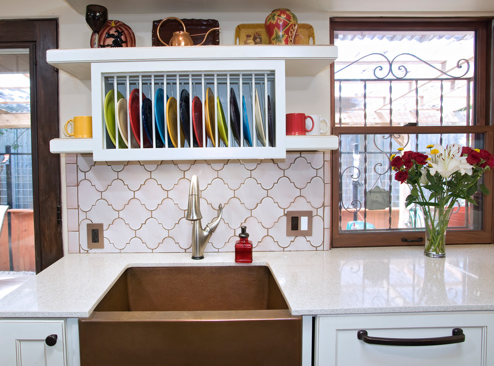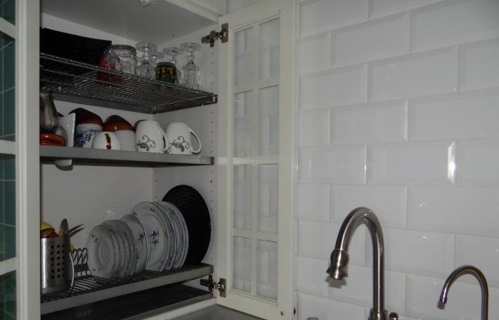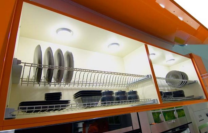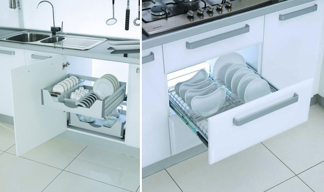 تجفيف الأطباق في الخزانة - 50 صورة للخيارات الأنيقة للمطبخ: