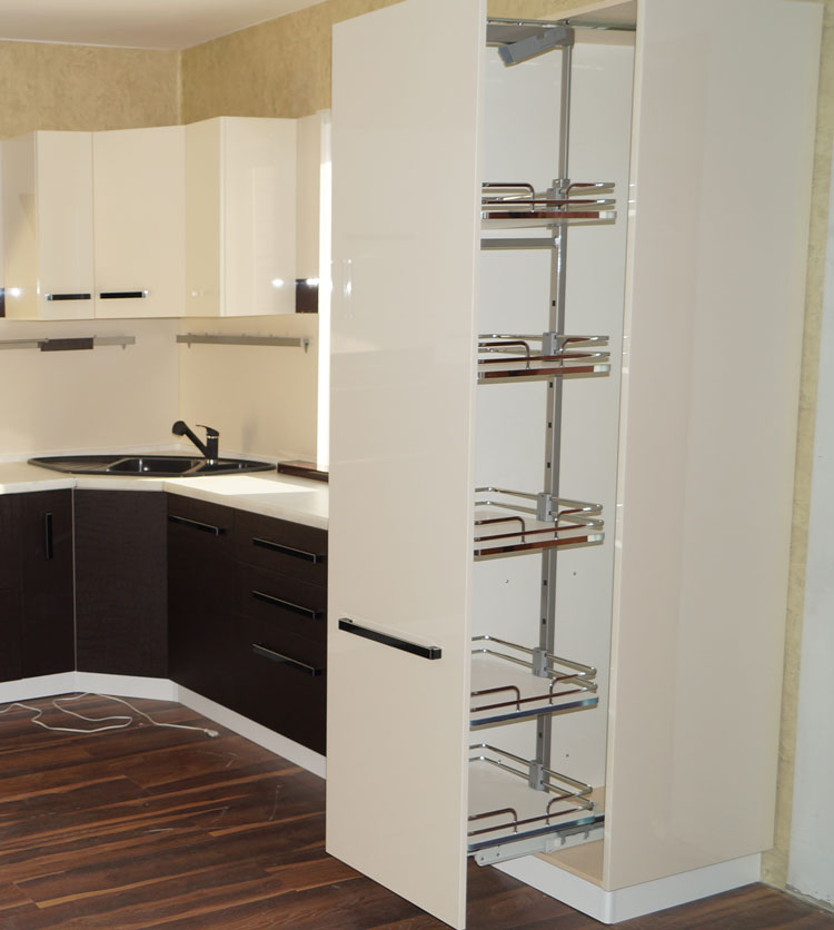 من الصعب الوصول إلى المجفف بسبب الواجهة الضيقة لخزانة الزاوية. مع أبعاد خزانة الزاوية 600 × 600 ملم ، يبلغ عرض الواجهة 400 مم فقط.