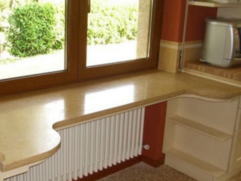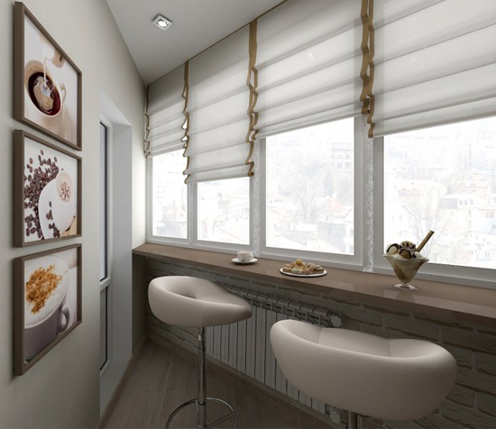 عند إجراء عملية إصلاح شاملة واستبدال النوافذ ، يمكنك طلب عتبة بدلاً من المكون القياسي ، الذي يتحول إلى طاولة طعام. باستخدام هذه الطريقة البسيطة ، تظهر مساحة إضافية قابلة للاستخدام ، كانت تستخدم سابقًا فقط للألوان الموجودة على النافذة.في هذه الحالة ، يجب أن تفكر في إصدار الستائر الرومانية على النوافذ أو الستائر ، والتي يتم تثبيتها مباشرة على إطار النافذة.