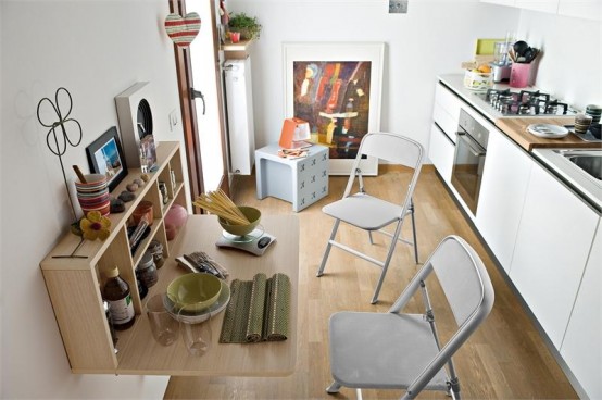 كراسي قابلة للطي ورفع الجدول قابل للسحب لمطبخ صغير