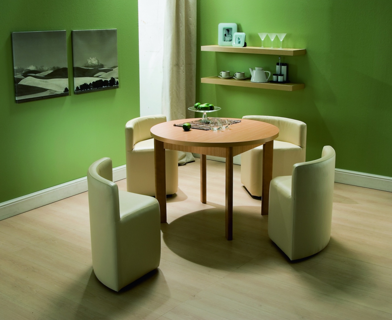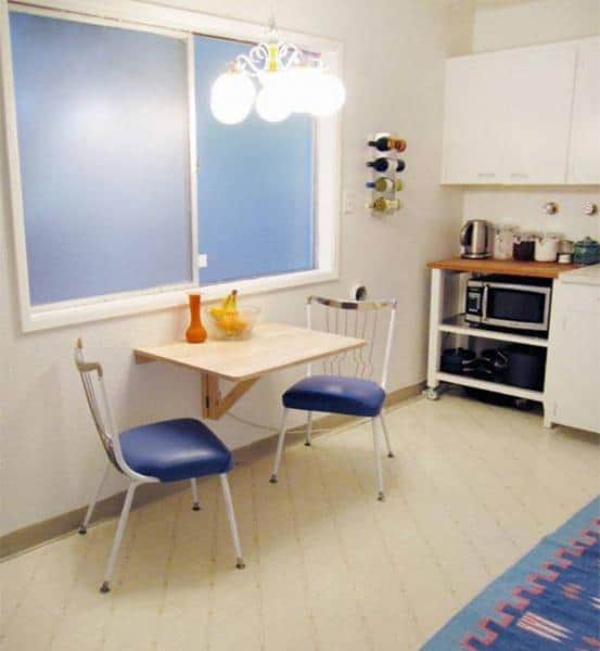 طاولة المطبخ المدمجة والكراسي ذات الشكل المناسب لمطبخ صغير