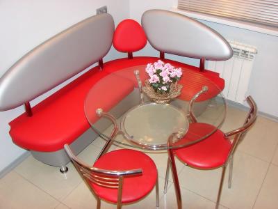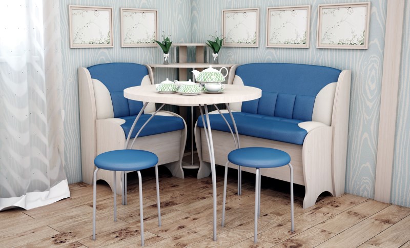 طاولة المطبخ مستديرة مع أريكة الزاوية من النافذة