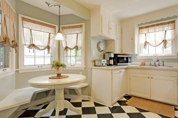 | 4 | في المطبخ الصغير يجب أن لا تستخدم مفارش المائدة ، كما أنها تضيف كميات كبيرة. إذا لزم الأمر ، فمن الأفضل استخدام الحصير الفردية التي تحمي الطاولة من التلف. |