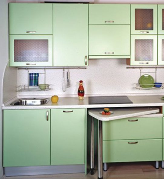 يعد المطبخ سمة لا غنى عنها لأي شقة أو منزل ، فهم يقومون بطهي الطعام فيه ، وتناول الطعام ، وغالبًا ما يجتمعون في نفس الغرفة ، وفي كل مساء يجتمعون كأسرة لحضور حفل شاي في المساء. لسوء الحظ ، لا تسمح مساحة المطبخ في الشقق الصغيرة بترتيب جميع الأثاث الضروري وفي الوقت نفسه توفر مساحة مجانية للتنقل أثناء الطهي.