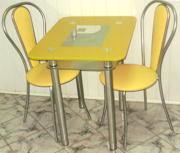 بالنسبة لهذه الخيارات ، يوجد عدد كبير من الخيارات لوضع كراسي مدمجة وطاولة لمطبخ صغير. بالنظر إلى الغرفة الصغيرة ، هناك رغبة في جعلها أكبر بصريًا على الأقل. لذلك ، اختيار كائنات من ظلال الضوء ، هناك شعور بزيادة المساحة ، النماذج الزجاجية تزيد من تعزيز هذا التأثير. إذا كانت عائلة كبيرة مناسبة بشكل مثالي لطاولة مستديرة ، فيمكن استيعاب عدد أكبر من الأشخاص. عندما لا تكون هناك مساحة كافية لوضعها في وسط الغرفة ، يجب إلقاء نظرة فاحصة على البديل المربع أو المستطيل الذي يمكن أن يقف على الحائط أو في زاوية. نقترح النظر في طاولات المطبخ والكراسي لمطبخ صغير والدراسة بمزيد من التفصيل كل خيار من الخيارات.