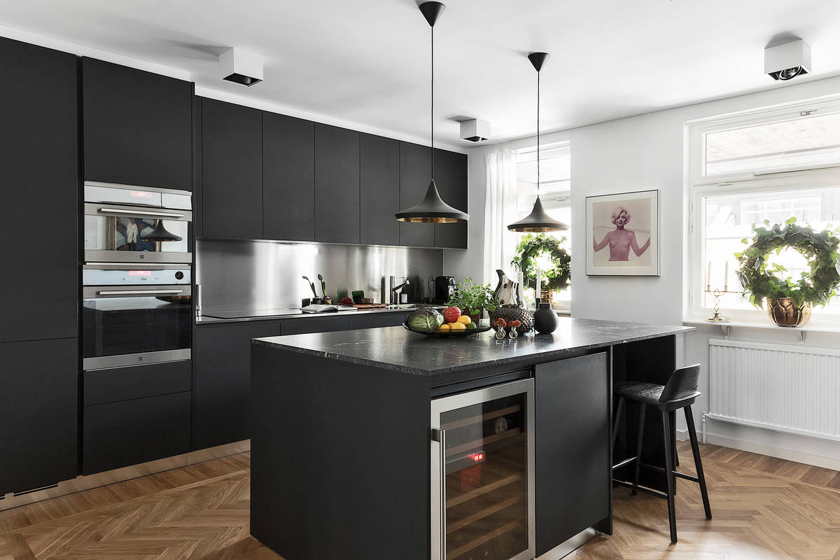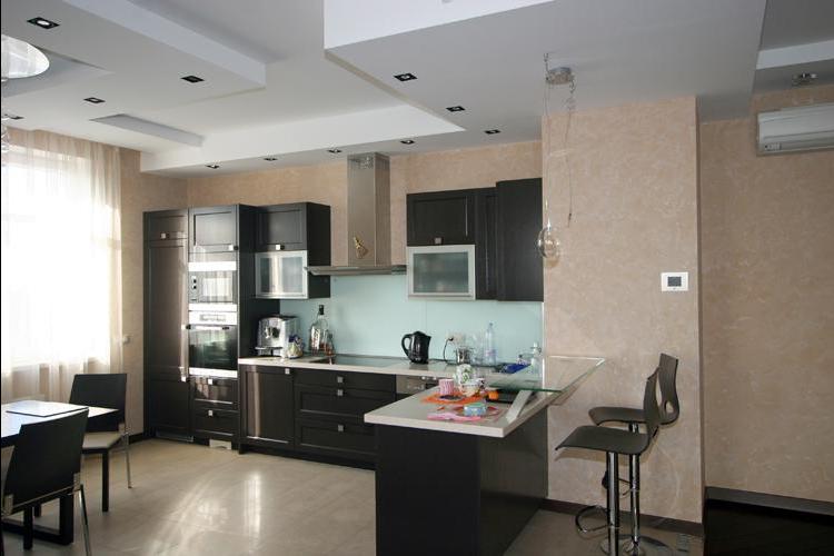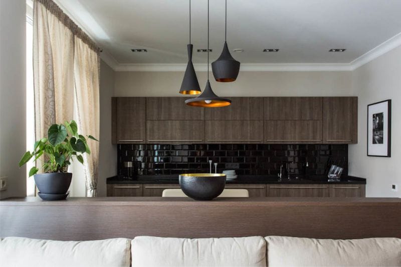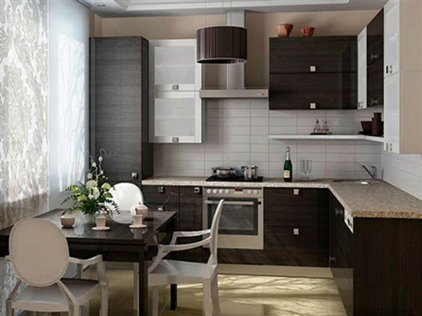 إذا كان المطبخ مدمجًا ، فسيهتم الخبراء بذلك ، ما عليك سوى اختيار تصميم سماعات الرأس والأجهزة المنزلية.