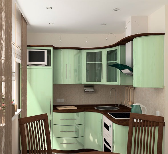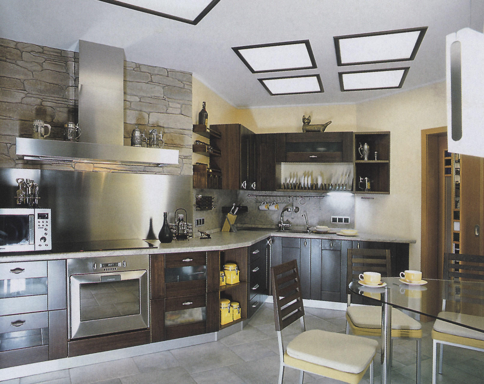 مجموعة - أثاث جيد التخطيط في الفضاء ، مما يسمح بحل العديد من المشاكل في المطبخ.