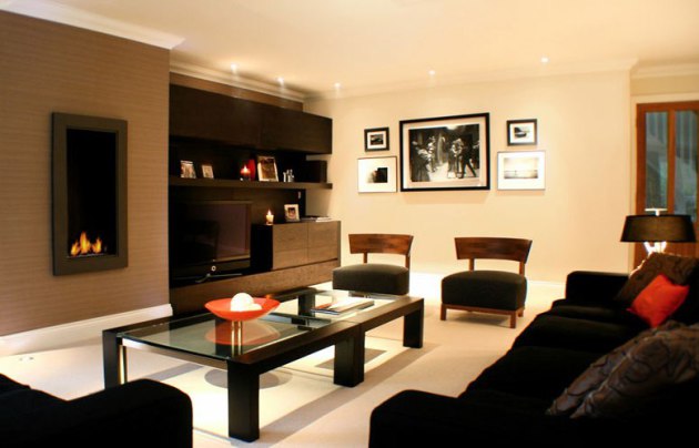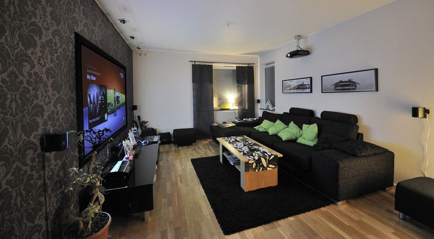 تقرر إنهاء جميع جدران غرفة المعيشة في اللون الداكن لا يمكن لكل صاحب المنزل ، ومساحة الغرفة يجب أن تسمح هذه الحريات.