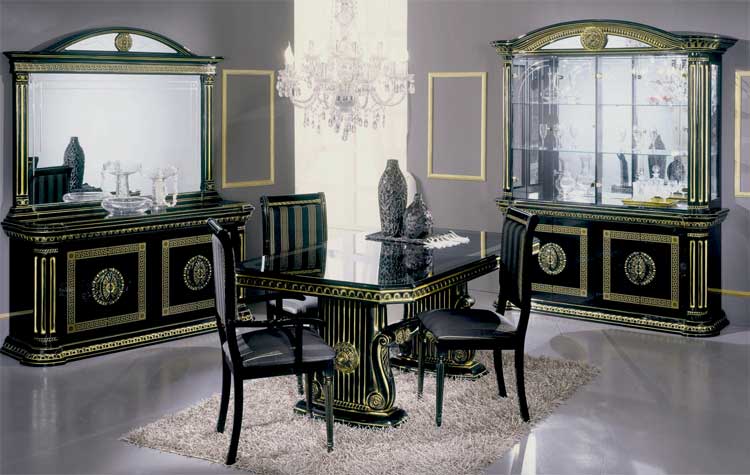 المظهر الضخم والأرستقراطي للأثاث الأسود يعطي التصميم الداخلي بأسلوب الإمبراطورية. الذهب والتذهيب في الديكور يعطي جو من الفخامة. مزيج مع زخرفة باللون الأخضر الزمردي أو الفيروز أو البيج ينعش ويعطي التطور.