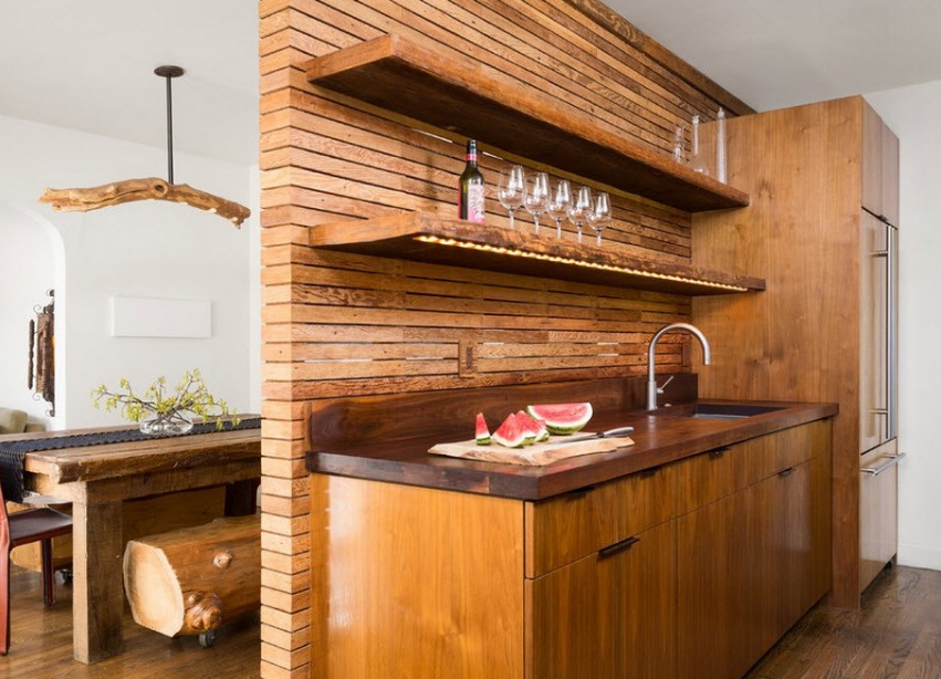 الزجاج بالإضافة إلى الخشب الطبيعي يبدو المرموقة ، ويؤكد على أسلوب وطعم أصحاب الداخلية.
