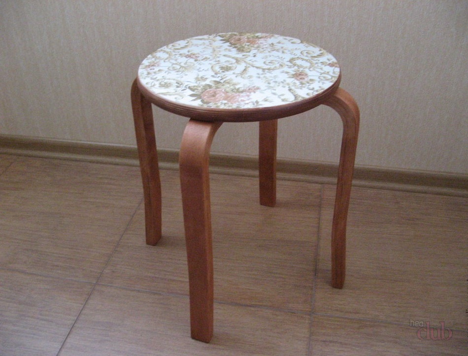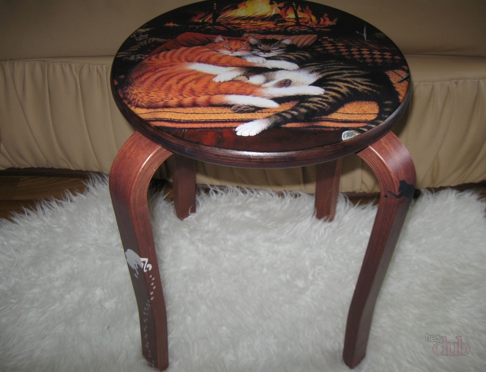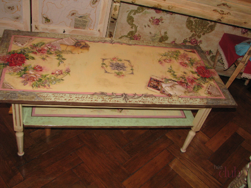 طاولة القهوة Decoupage ، والبراز وغيرها من الأثاث بأيديهم