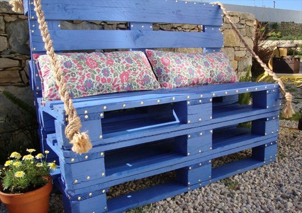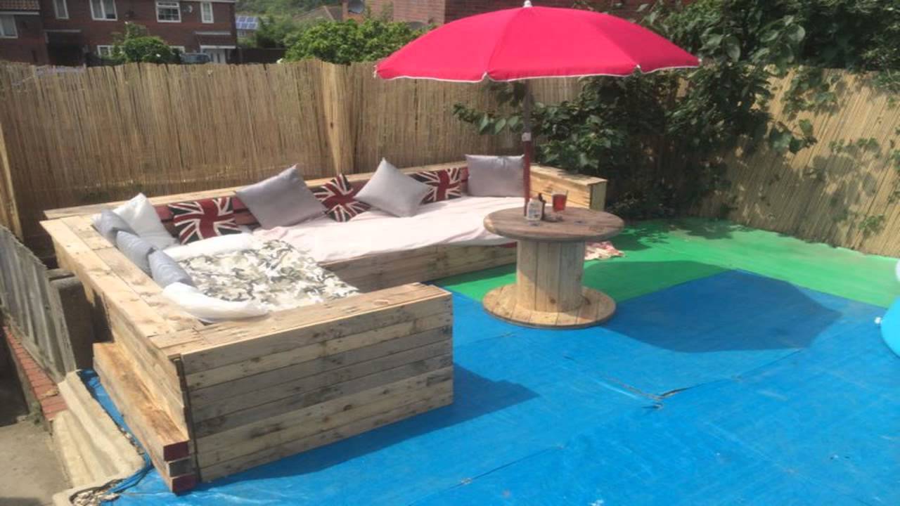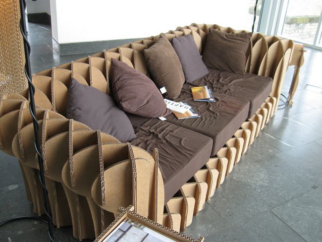 أريكة ناعمة مصنوعة من مواد خردة للاسترخاء في الظل