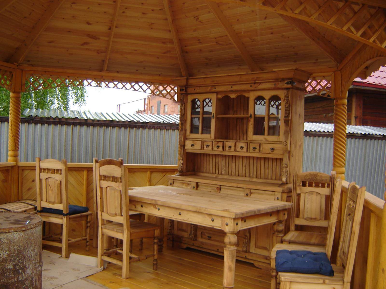 - من الشجرة. المواد الأكثر شعبية هي الخشب.من العناصر الخشبية ، يمكنك أن تفعل كل ما تحتاجه ، والذي قد يكون ضروريًا في فصل الصيف الداخلي. بعد كل شيء ، تختلف العناصر الخشبية في صناعة الخفة والكفاءة ودرجة عالية من الراحة البيئية. تقترب صناعة الأثاث الخشبي من النوع المستخدم. في هذا الصدد ، قد تحتاج وأدوات مختلفة. من الأفضل استخدام الألواح الخشبية والخشب الرقائقي المعالج. ولكن في مسار يمكن أن تذهب وأشياء مختلفة لا لزوم لها من الشجرة ، والتي ، مع الديكور المناسب يمكن أن يكون إضافة كبيرة إلى التكوين العام للداخلية. من الأفضل الامتناع عن صنع مواد من الأشجار الصنوبرية ، لأنها تحتوي على الكثير من الراتنج. إضافة جميلة إلى الموقع ستكون الأشياء التي تم إنشاؤها باستخدام سجلات. في كثير من الأحيان ، يمكنك العثور على خيارات الأثاث من مجموعات كبيرة الحجم في dachas.
