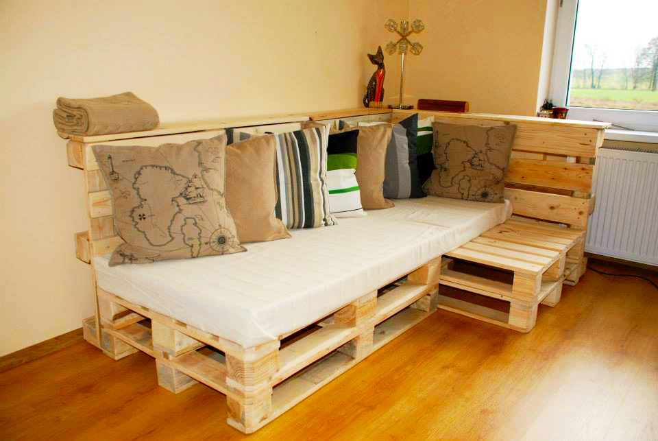 طاولة مشرقة وغير عادية لإطارات النفايات وزاوية خشبية مزينة بالوسائد المصنوعة يدوياً