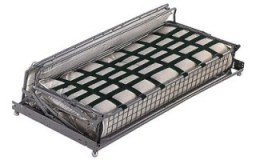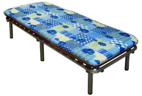 - الفرنسية. يتكون التصميم من 3 أجزاء مثل الشبكة العظمية. يشتمل أيضًا على مرتبة ومطاط رغوي ، سمكه 6-10 سم ، ولا يوجد به مساند للرأس قابلة للطي. هذه النماذج عادة ما تكون مصنوعة من الصلب.