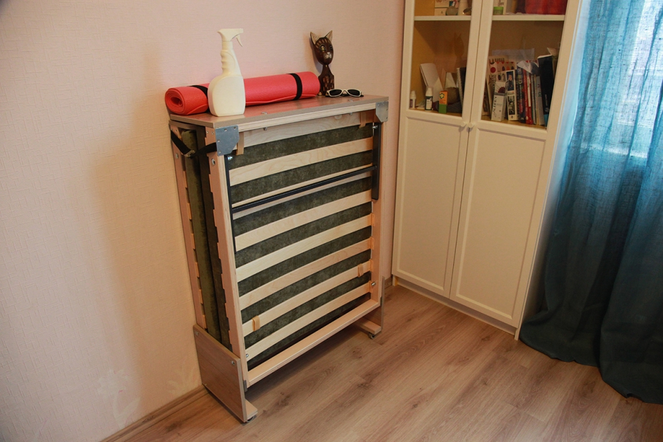 عادة ما يختار أصحاب الشقق الصغيرة أسرة قابلة للطي سهلة التجميع والتفكيك.