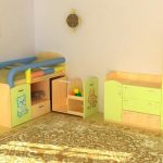 بالنسبة إلى الحضانة المريحة ، ليس من الضروري استخدام مجموعة قياسية من العناصر ، يمكنك استخدام الإصدار المدمج. على سبيل المثال ، لا يوجد كرسيان أو ثلاثة مقاعد ، ولكن كرسي ومقعد (أو كرسي صغير) ، طاولة مع أرفف وأدراج ، مربط سرير ، إلخ.