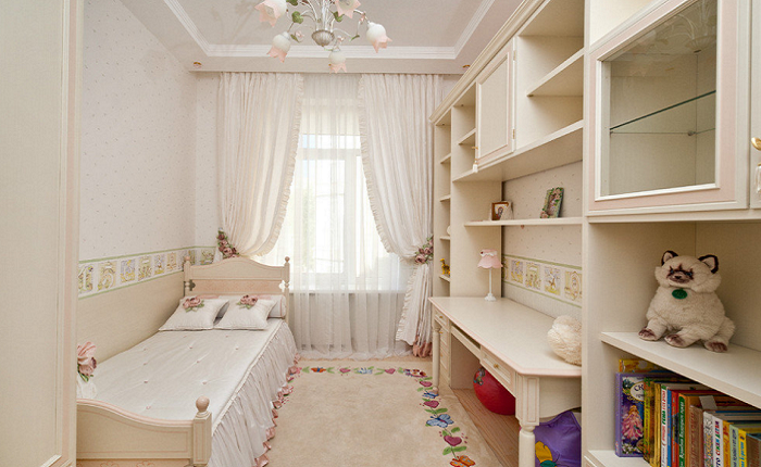 في الحضانة ، يجب وضع السرير بعيدًا قليلاً عن النافذة ، ولكن ليس على الممر. يمكنك أن تفكر في تغيير مع أريكة زاوية ، إذا كان الطفل قد كبر بالفعل.
