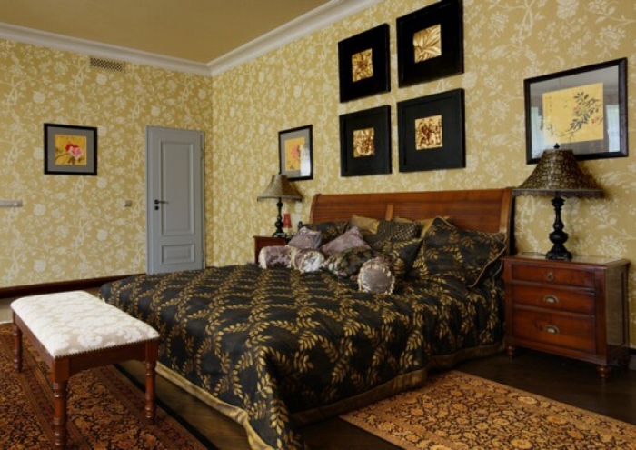 - الإمبراطورية - النمط الأرستقراطي. يبدو أيضا الظلام جيدة أثاث. كل الغرفة معظمهم في نغمة واحدة ، وأكثر البيج والشوكولاته والبني.
