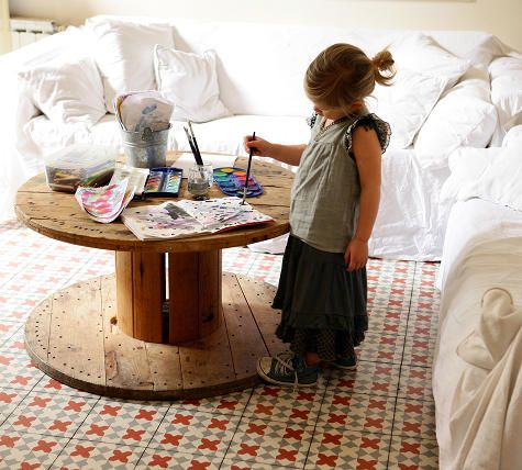 قطعة أثاث أصلية - طبل كبير ، تم تحويلها إلى طاولة قهوة أنيقة
