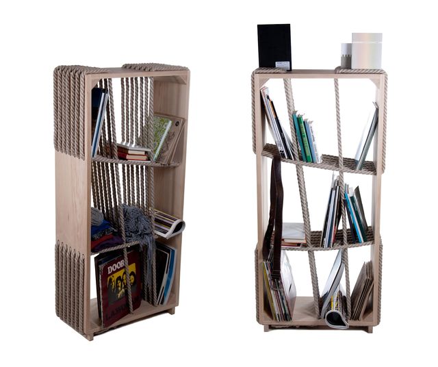 خزانة جانبية مع أرفف حبل مصنوعة يدويًا