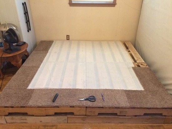 - تنجيد السجاد. في منتصف التصميم وضع حشو. وتغطي المنصات نفسها مع السجاد.