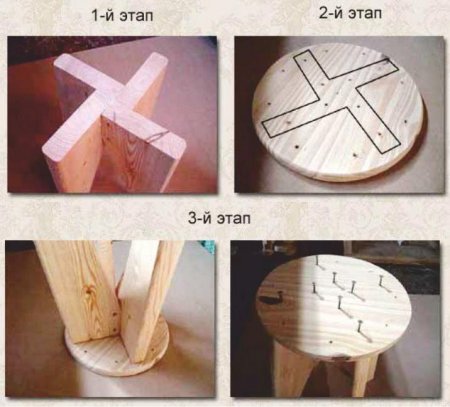 قبل العمل ، قم بإعداد الرسومات بأبعاد محددة. هذا سوف يساعد على معرفة كمية المواد. في المرحلة الأولية نجمع كل التفاصيل اللازمة. جعل العلامات على الشغل. باستخدام بانوراما من صفيف قطع دائرة ، يجب أن يكون قطرها 360 ملم - وهذا هو الجزء العلوي من المقعد. الآن تحتاج إلى أن تكون مصقول مع الجهاز. ثم قطع دائرة أصغر - 260 ملم. سوف تحتاجها لتجميع وربط الساقين.